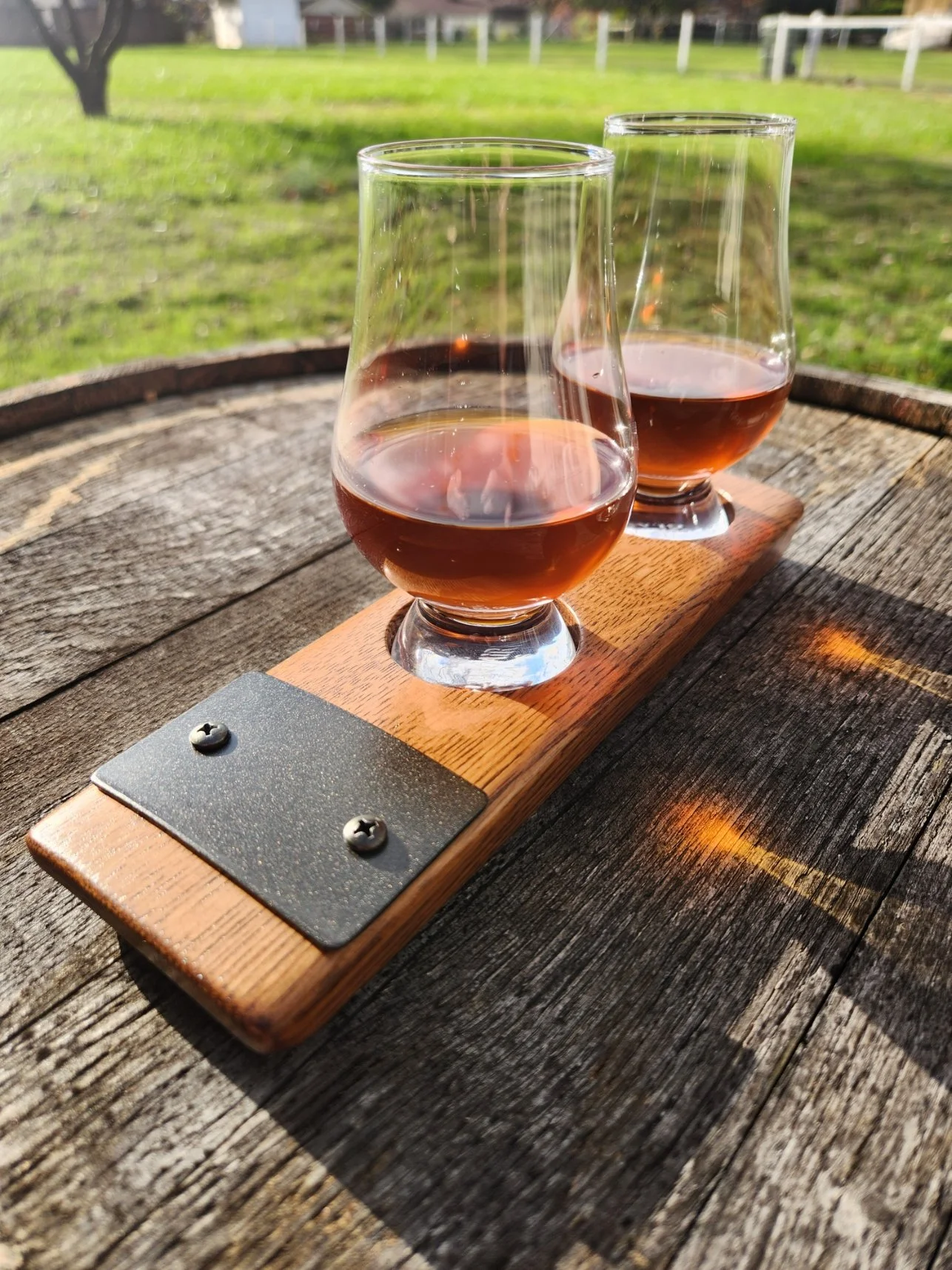 1. One bourbon barrel stave flight